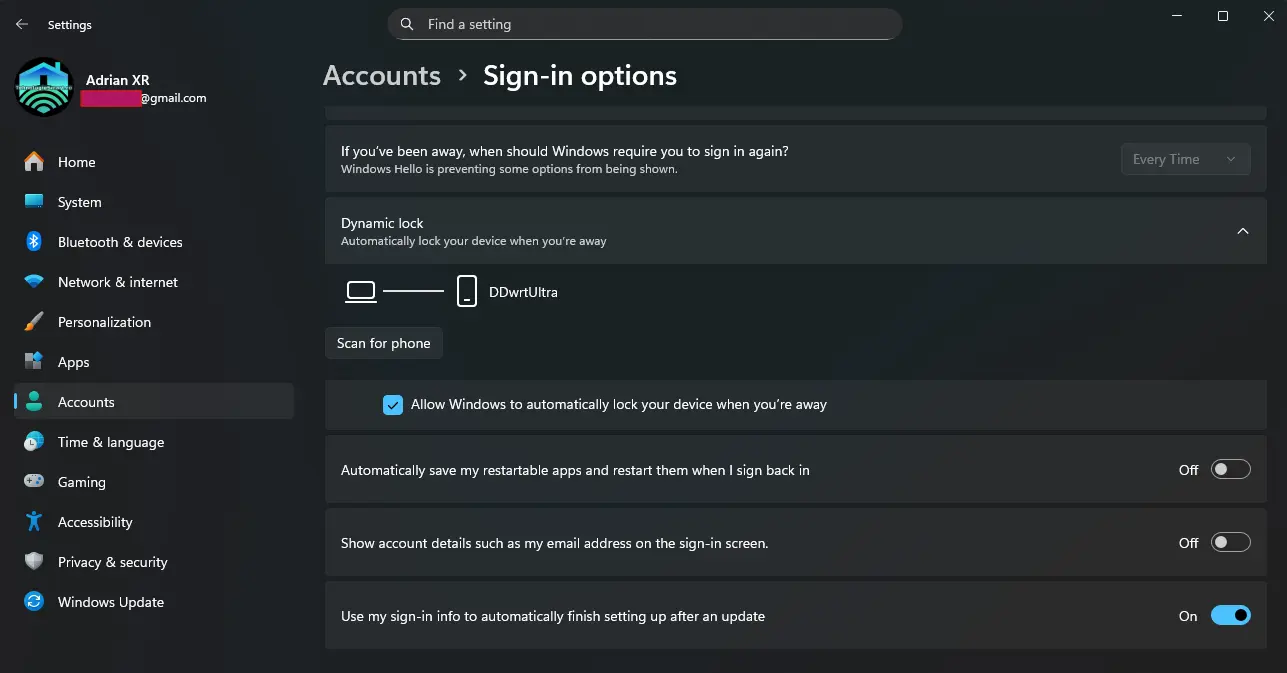 ⚙️ Cum să activezi Dynamic Lock în Windows